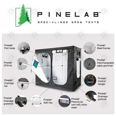 Pinelab - Specialised Grow Tent | 2.75M x 1.5M x 2.13M High (5FT x 9FT) | With CFM Kit & Gear Board